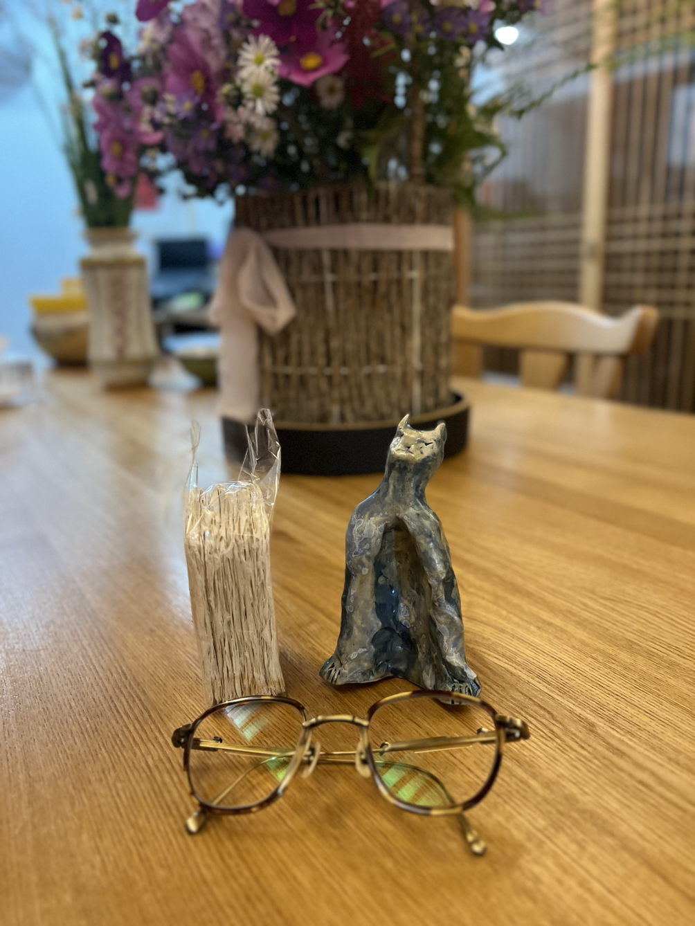 현장은 오픈 준비로 분주했다. 김민정 시인은 현장을 진두지휘하고 박연준 신용목 시인은 음식을 차리고, 동휘 현승 편집자는 손을 쉴 틈 없이 바빴다. 나는 멋진 스타일의 유진목 시인에게 인사하고 안경테구입 의사를 밝히고 구경했다. 그리고 평소 선호하진 않지만 꼭 쓰고 싶었던 스퀘어 모양의 그리피스 L라이트 모델의 안경테를 집어 들고 송금했다. 옷도 모두 탐났지만 옷을 사지 않는 결심을 흔들지 않았다. 분주한 장터를 구경하다 비교적 무게가 덜 나가는 강혜숙 선생님의 고양이, 김민정 시인의 명함용 종이를 구매하고 신나게 먹고 희야와 같이 근처를 산책했다.