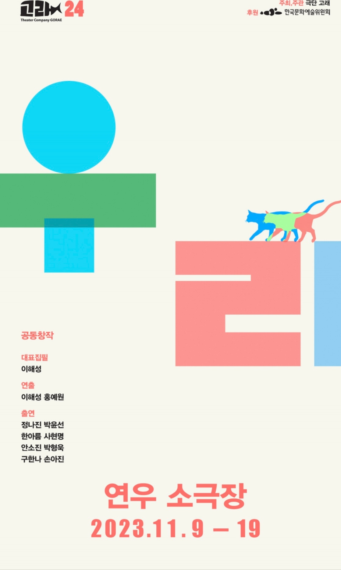 극단 고래의 신작 <우리>는 페미니즘을 전면에 내세우고 세대 갈등과 소통을 이야기한다. 실제로 극은 고래의 대표이자 상임 연출 이해성과 성폭력반대연극인 행동 대표이자 연출가인 홍예원의 공동 창작/연출 작품이다.