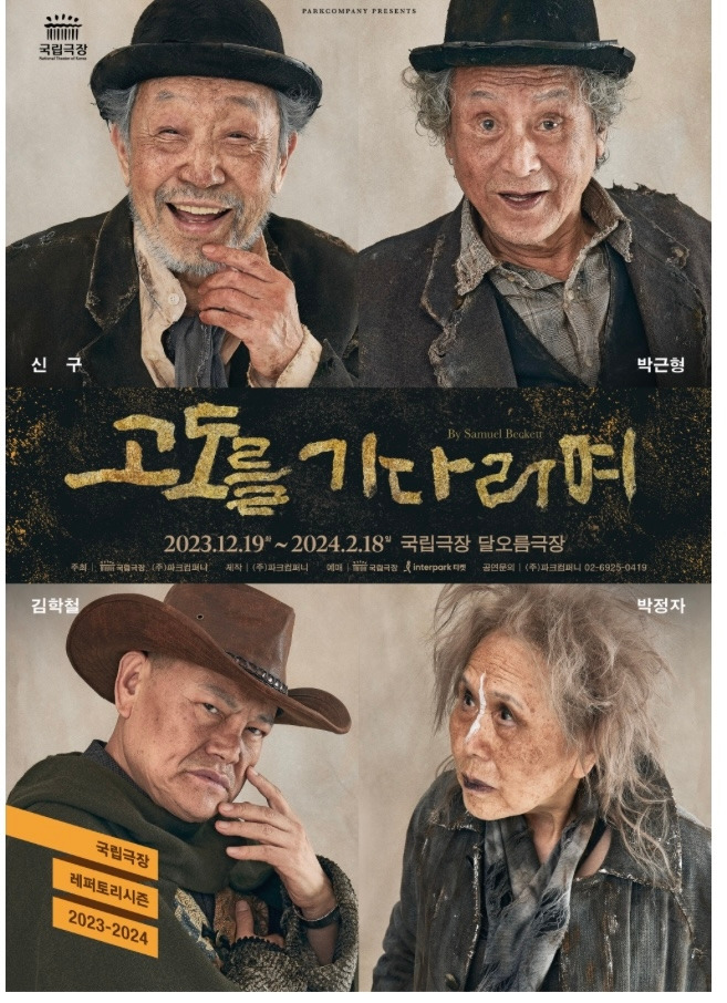 연극 <고도를 기다리며>를 4번 정도 본 것 같다. 20대, 40대 그리고 50대에. 어렸을 땐 그저 배우들의 3시간 여의 열연에 감동했고 조금 나이가 들어선 고도는 누구며 도대체 무엇일까? 질문했고, 이번에는 디디와 고고, 포조와 럭키는 어떤 관계일까? 란 질문이 생겼다. 아무튼 볼 때마다 다른 것이 보이고 느낌이 다른 것이 <고도를 기다리며>이다. 이번 국립극장과 파크컴퍼니의 <고도를 기다리며>는 신구, 박근형, 박정자, 김학철 등의 원로 배우가 한 무대에 서는 것으로 관심을 모았다. 나 역시 같은 이유로 티켓이 열리자마자 예약했다. 그리고 결과적으로 잘한 일이란 생각이 들었다.