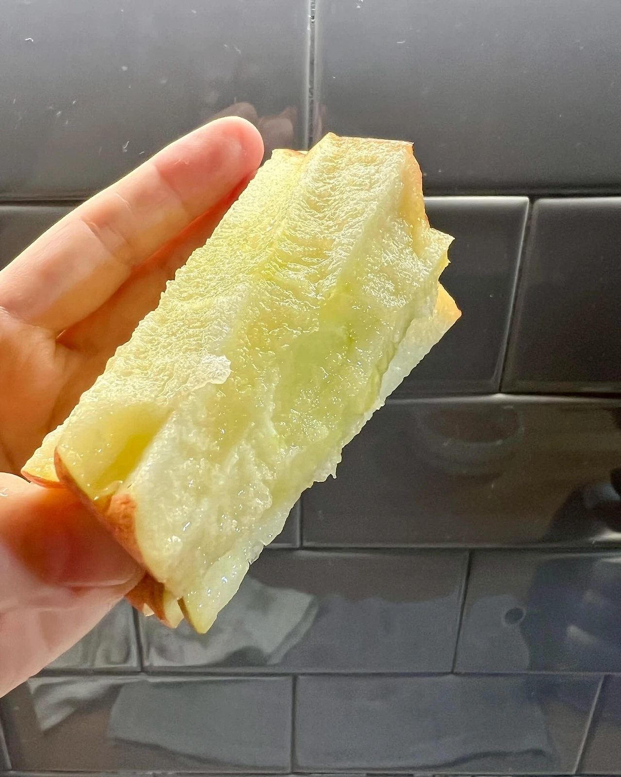 사과를 잘라먹었다. 살을 발라내 일자가 된 사과. 난 사과의 씨앗이 붙은 이 부분을 먹지 않는다. 내가 이 부분을 버리자 어떤 분이 ‘과일을 별로 안 좋아하는군요’라고 했다. 딱히 즐겨 먹진 않지만 안 좋아하는 것 같진 않은데 그냥 단번에 뭔가를 안 좋아하는 사람이 되었다. 나는 그냥 저 부분을 발라 먹는 게 귀찮을 뿐이다.