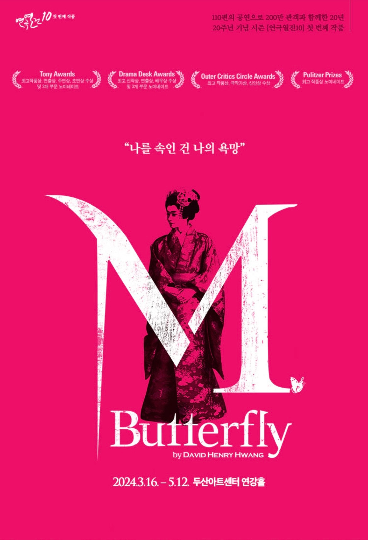 데이비드 헨리 황의 아시아계 미국인으로는 최초로 브로드웨이에 작품을 올리고 다양한 상을 수상했다. 국내에선 2012년에 초연되었고 연극열전의 레퍼토리 중 하나다. 연극 대중화를 기치로 시작한 연극열전은 올해로 20주년을 맞았다. 이 작품은 20주년 기념 첫 작품으로 기존 무대보다 큰 극장에서 시작했다. 다양한 수상 경력을 검증된 재미와 의미도 있는 작품으로 실화를 바탕으로 만들어진 이야기다.