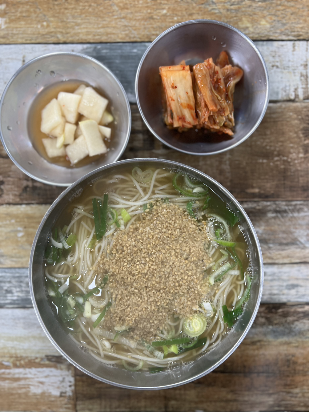 시장을 한 바퀴 돌고 중앙시장의 <풍년집국수>에 갔다. 잔치 국수 한 그릇에 4,000원. 느릿한 충청도 사투리를 들으며 식당에 앉아 주방이며 식당 주인을 살펴보았다. 모든 것이 반질반질했다. 이렇게 정갈하면 맛이 좀 떨어져도 좋다. 그런데 부족하지도 넘치지도 않은 멸치로 낸 국물의 잔치국수다. 다만 보통 잔치국수보다 면이 조금 더 두껍고 이것저것 고명대신 깨가 수북이 얹어졌다. 김치도 직접 담근 김치다. 좋다. 또 가야겠다.