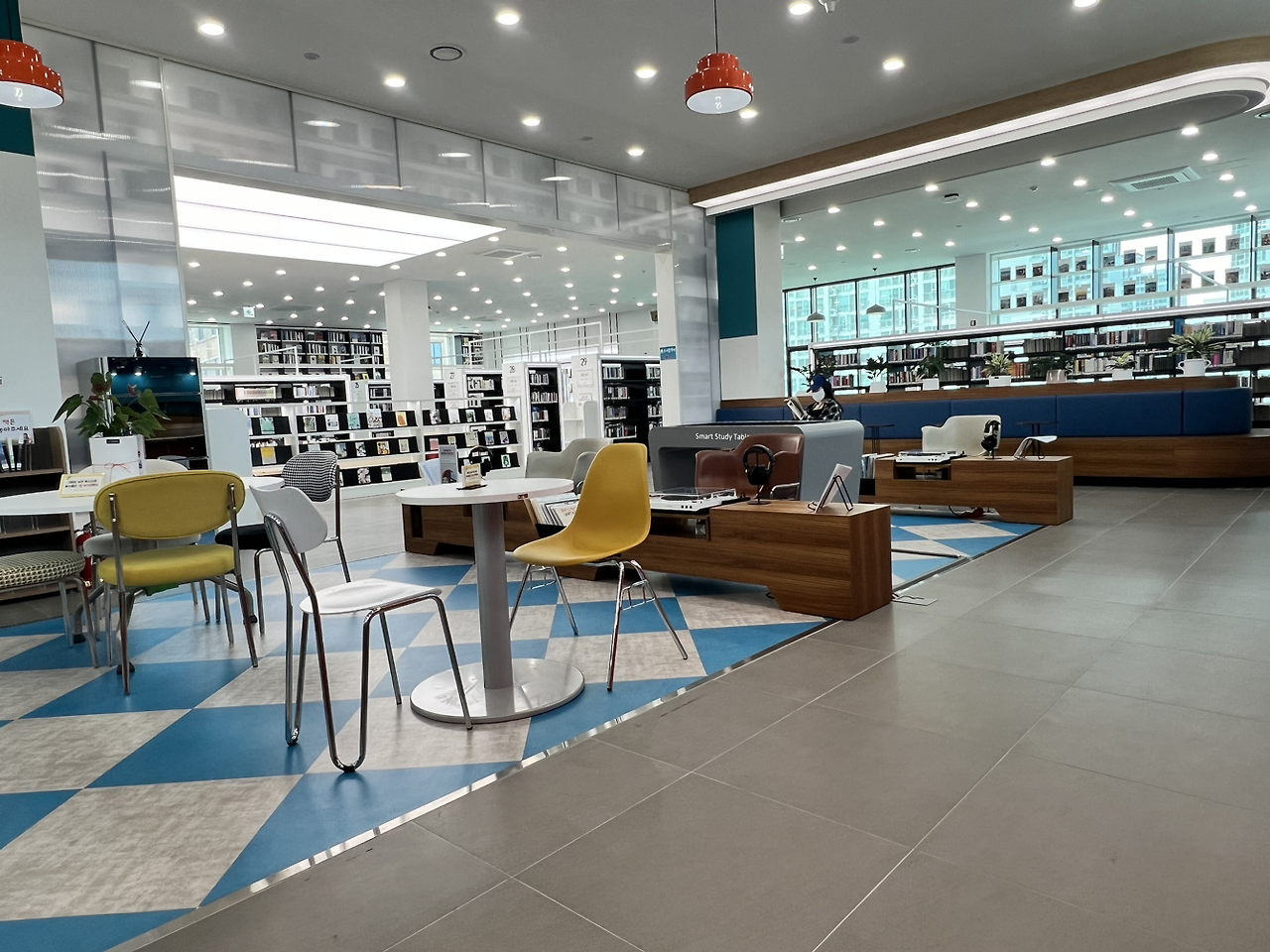 3층으로 구성된 도서관의 1층엔 작은 카페와 대강당을 비롯한 크고 작은 규모의 강의실이 있고 2층엔 어린이를 위한 공간과 공유 오피스와 스튜디오 3층엔 열린 서가와 열람실이 있다. 새로 지은 건물답게 시설도 좋고 깨끗하다.