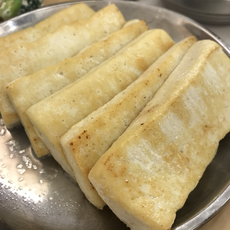 두부 메뉴 중 하나를 꼽으라면 난 언제나 두부부침을 뽑는다. 들기름에 잘 구워진 두부는 정말 맛이 좋기 때문이다. 내일도두부에도 두부부침이 있었다. 두부 한모를 큼직하게 잘라 들기름에 잘 구워내줬다.