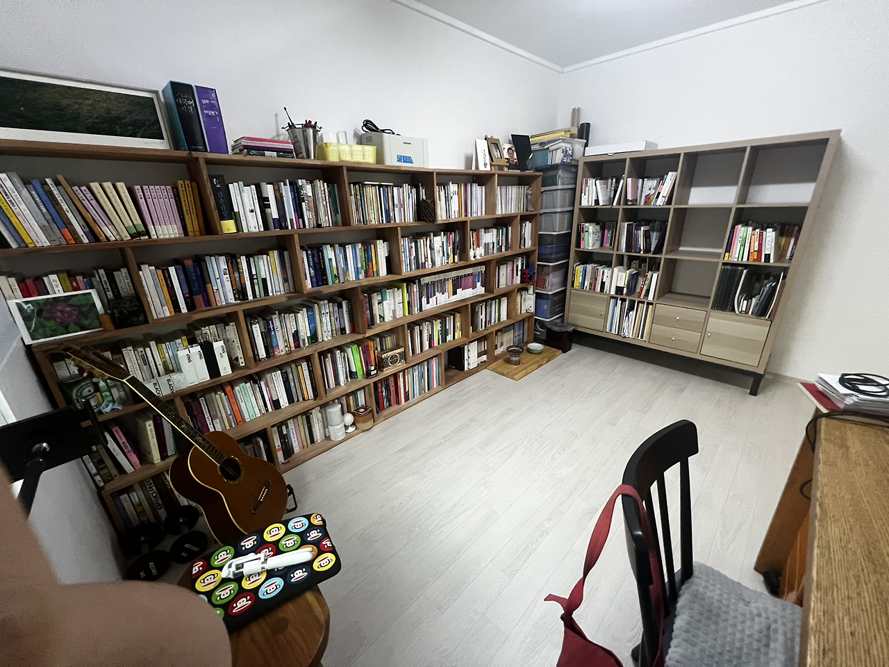 남편 방과 침실은 이제 완전히 세팅되었다. 남편 방 책장이 조화롭지 않지만 가지고 있던 것과 쓰임에 필요한 것을 같이 두려니 어쩔 수 없었다. 그래도 읽고 쓰기엔 적절하다. 좋은 의자를 사주겠다고 했지만 남편은 좋은 의자가 필요할 만큼 오래 앉아있고 싶지 않다고 하였다.