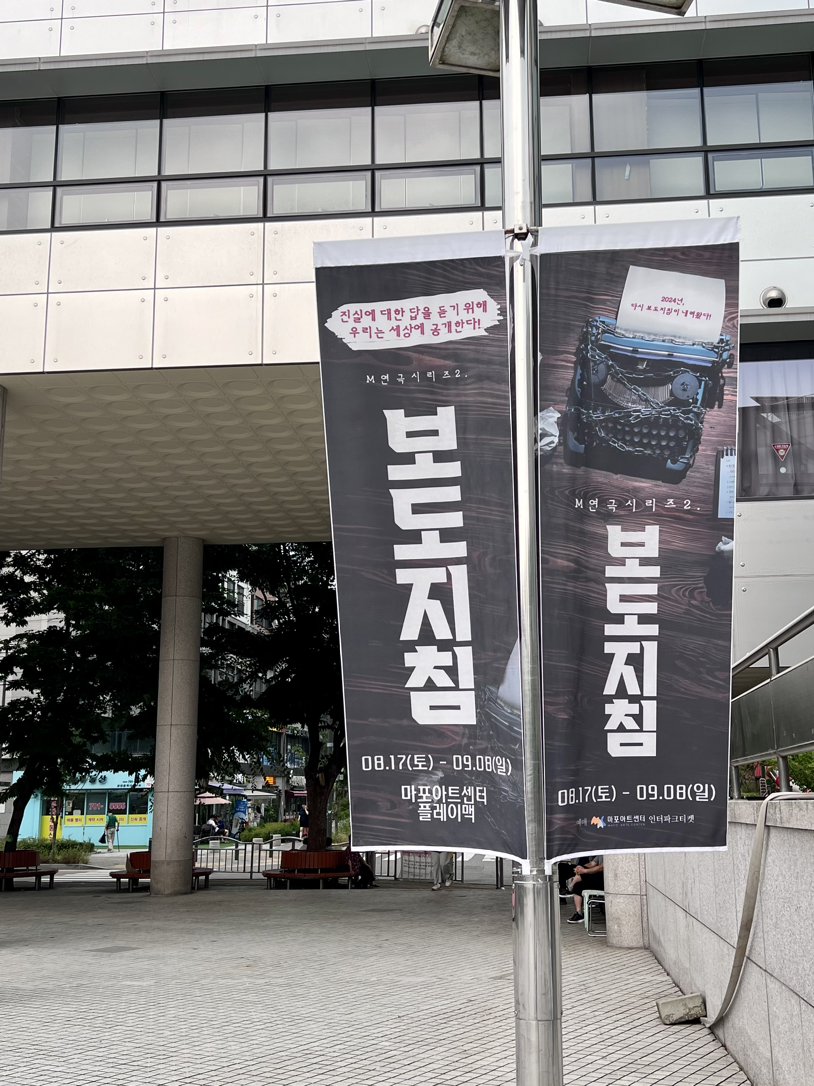특이하게 커튼콜대신 극 시작할 때 촬영이 기능하다. 9월 8일까지 마포아트센터에서 공연된다. 극장에 가서, 연극이어서 가능한 시원한 이야기를 들어보자. 믿고 보는 오세혁 작가 희곡이다.