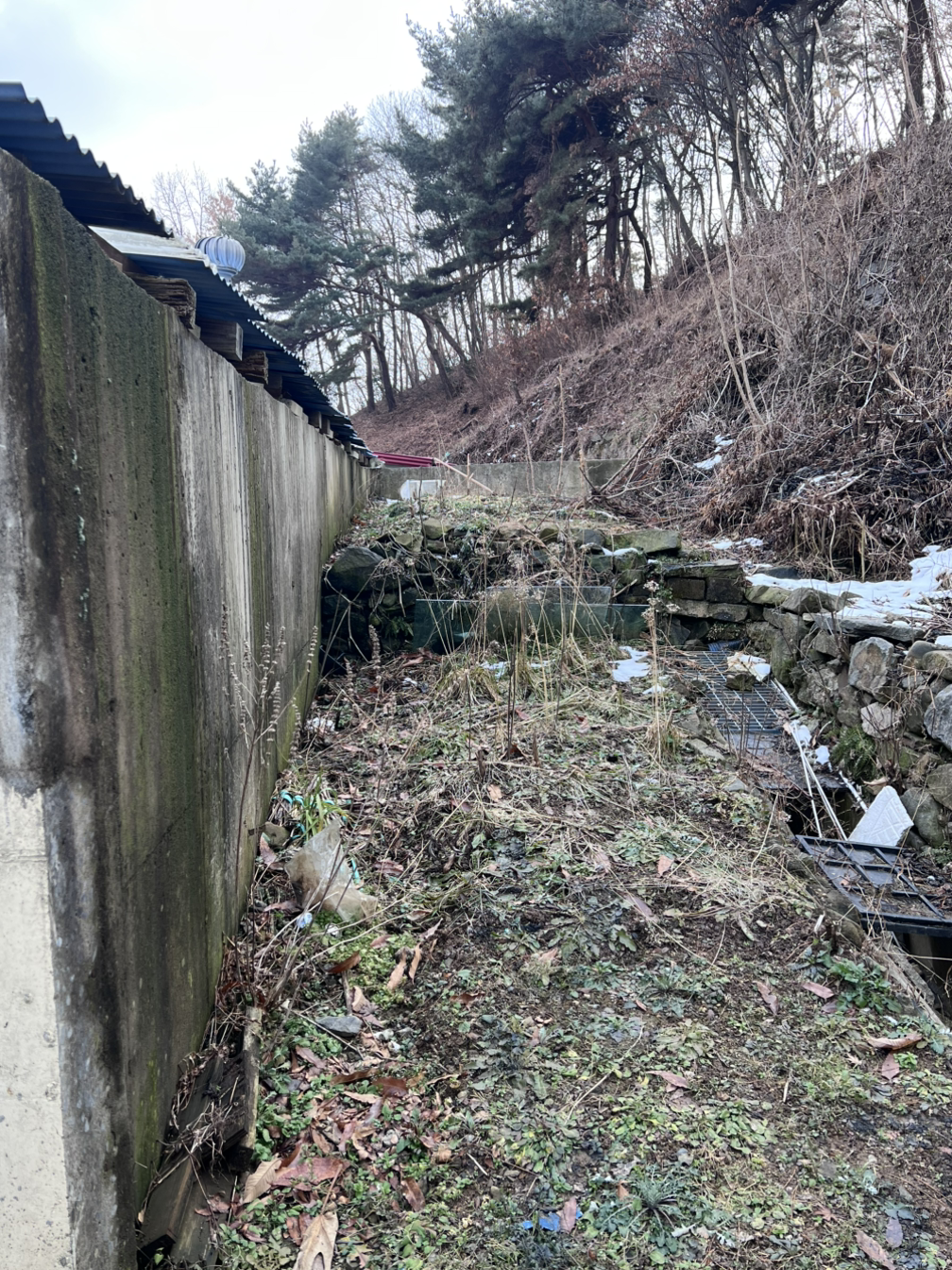 이 흙을 좀 치워야 축대가 안전할 것 같다.