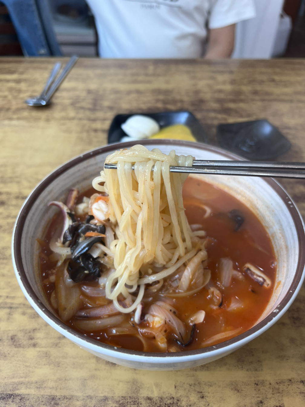 짬뽕 국물은 해산물 기반이다. 살짝 매콤한데 국물이 담백하다.