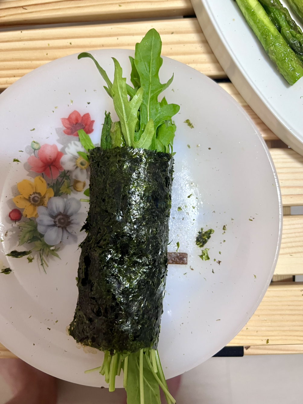 루꼴라의 어린 매운맛이 김밥에서 빛을 발하더라. 깻잎지 조림은 적절한 선에서 확실히 존재감을 발휘했다. 깻잎지 조림대신 묵은지나 단무지도 좋을 것 같다.