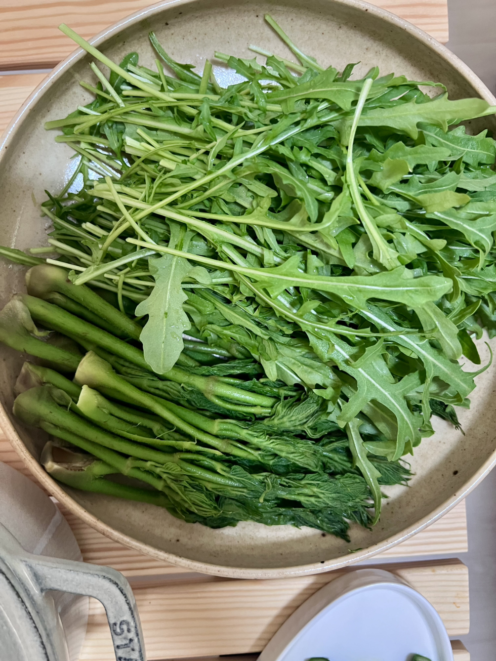 홍성에서 루꼴라와 식용꽃을 재배하는 장영윤 농부가 루꼴라 파격할인을 하길래 루꼴라 500g을 샀다. 뭐 해 먹을까 고민하다 간단히 김밥을 싸 먹어야겠다고 생각했다.