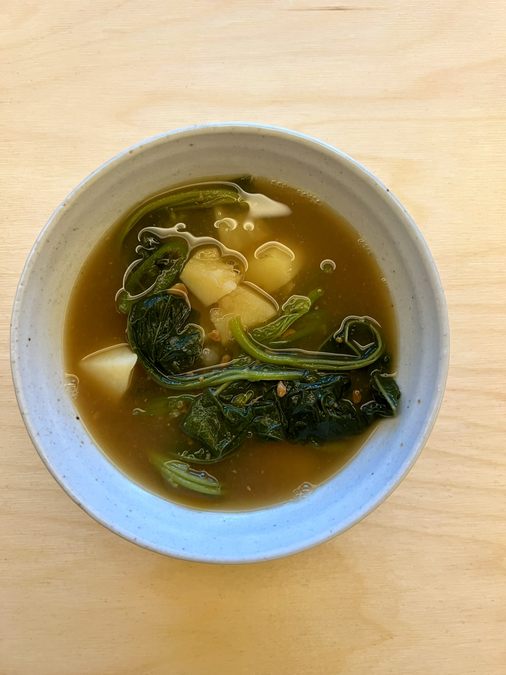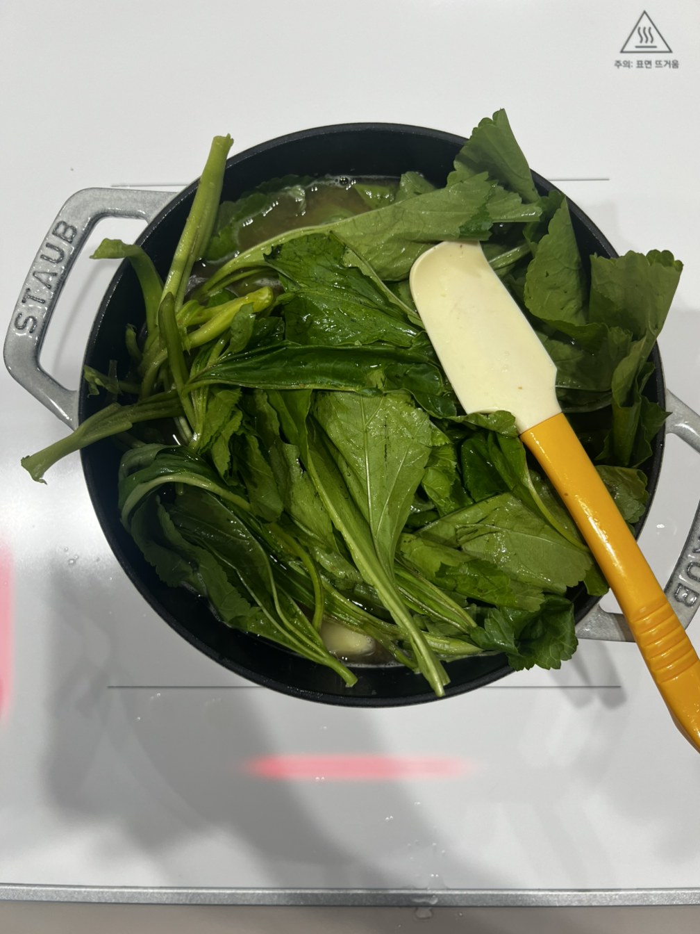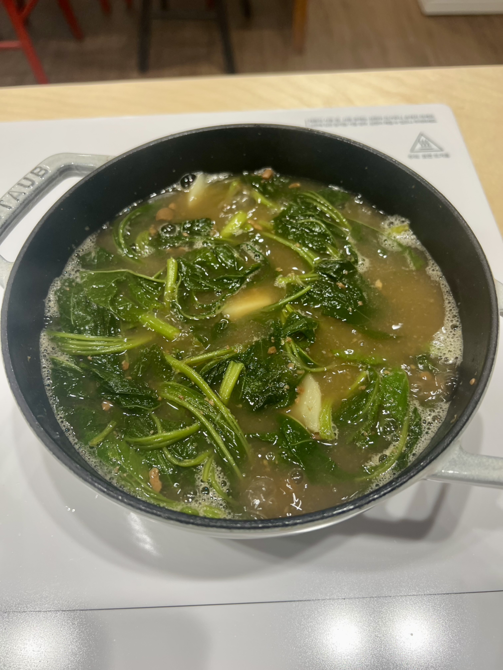 물에 된장 풀고 아욱 넣고 폭폭 끓이기만 하면 된다.