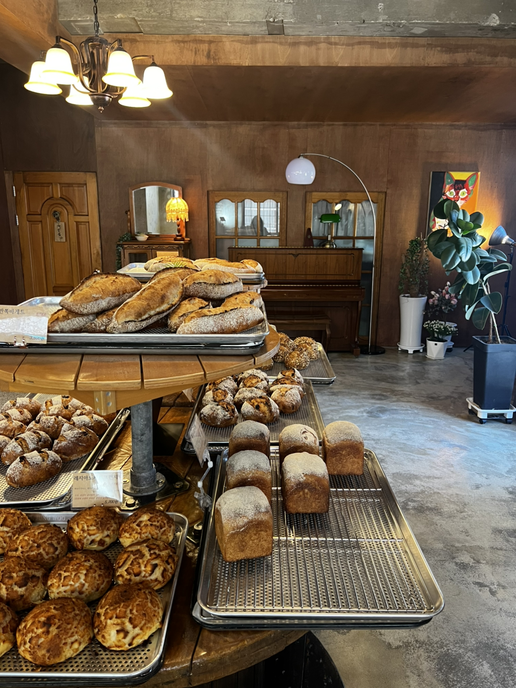 이 빵집은 내 취향이었다. 나는 달달한 케이크보다 식사용 빵을 좋아하는데 잡학다식엔 그런 빵이 잔뜩 있었다. 으아~~ 기분 좋았다. 고은정 선생님께 방문할 예정이라 이것저것 빵을 골라 담으니 무척 뿌듯했다.