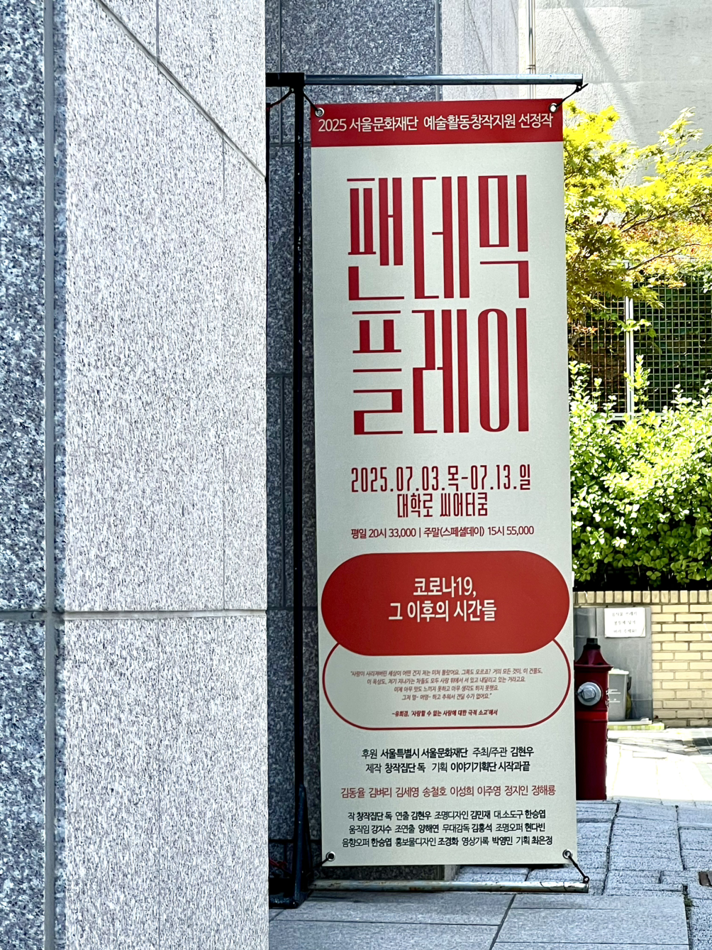 극장에 들어가 입장권을 받는데 건네준 것은 두툼한 KF94의 방역 마스크. 이 연극 <팬데믹 플레이>의 티켓이었다. 극장에 입장할 때 잠깐 썼는데 숨이 막힐 듯 답답했다. 불과 2년 전까지 피부처럼 여겼던 마스크인데 말이다.
