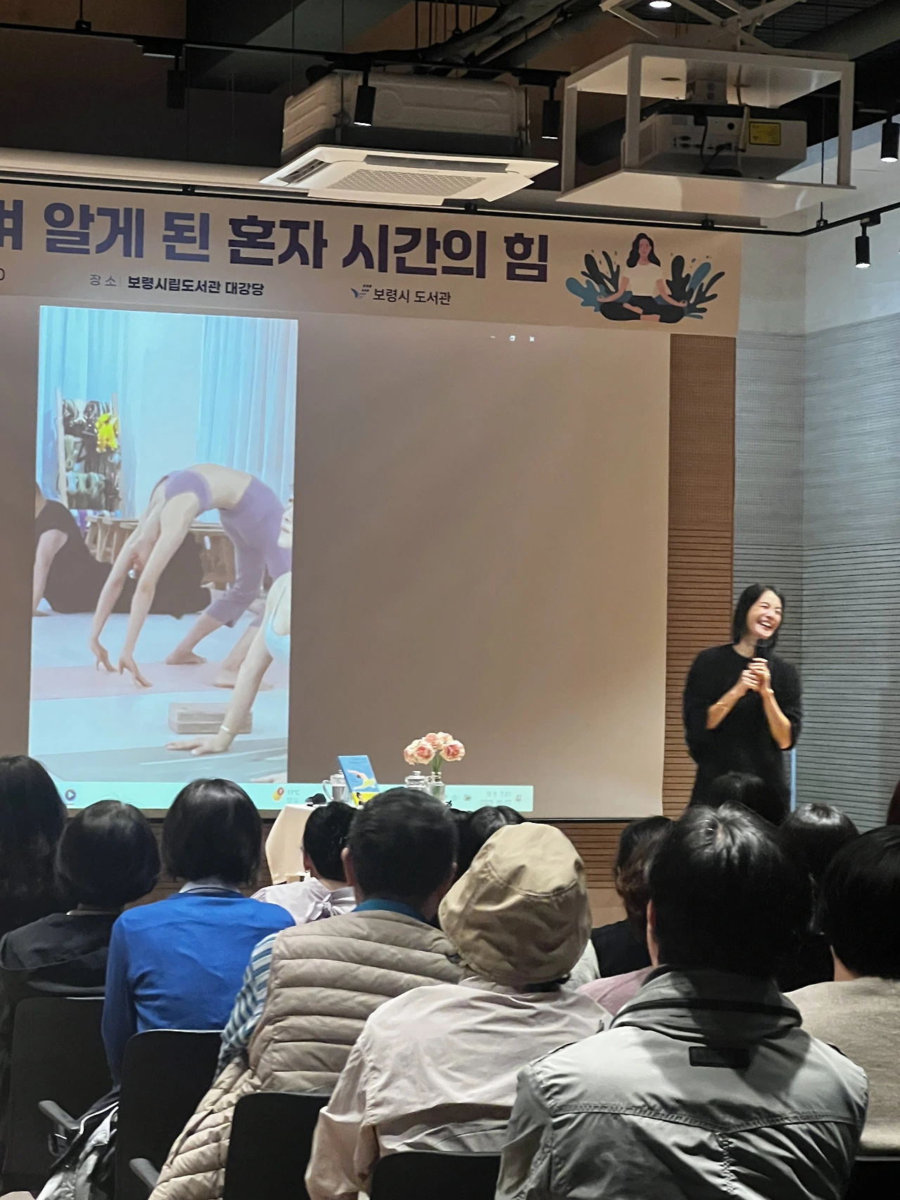 시립도서관 대강당 100석 객석이 꽉 찼다. 김지호 배우가 그의 책 <마음이 요동칠 때, 기꺼이 나는 혼자가 된다> 북토크로 보령에 왔기 때문이다.