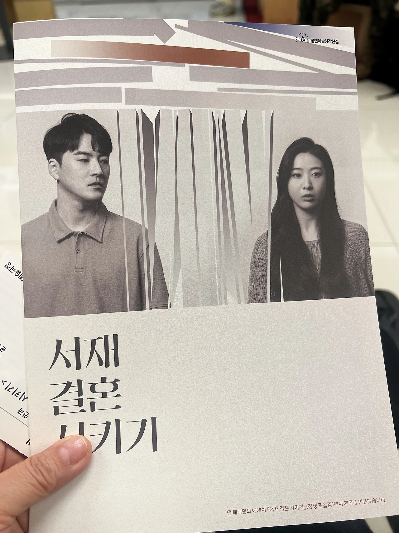 극 막바지엔 여기저기서 훌쩍이는 소리가 들린다. 성주가 아내를 제대로 애도하고 떠나보낸 것이다. 드러내고 이야기하기 어려운 자살과 그로 인해 상처를 안고 살아가야 할 남겨진 사람들을 잘 다뤘다. 트리거워닝은 필요해 보였다. 내 옆 자리 관객은 매우 힘들어하며 보다 인터미션 때 나가 들어오지 않았다.