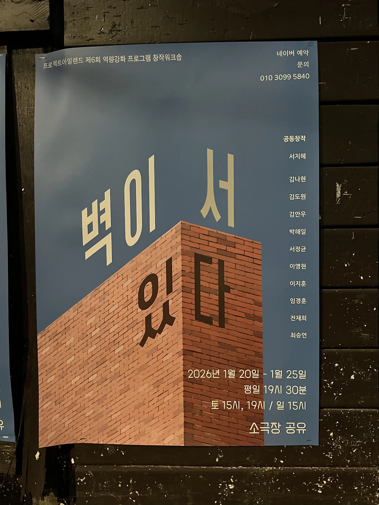 벽을 소재로 프로젝트 아일랜드의 20~30대 배우들이 직접 극을 쓰고 연기를 하며 풀어낸 이야기는 작고 사소했지만 울림이 있었다.