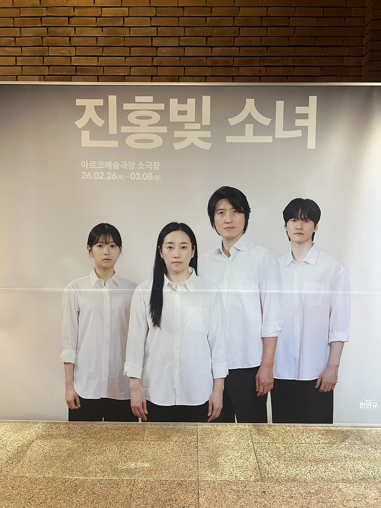 즉, 〈진홍빛 소녀〉는 폭력을 사건이 아니라 ‘지속되는 감각’으로 다루는 작품이다. 극은 붉은 조명과 파편화된 장면 전환을 통해 한 소녀의 기억을 현재로 끌어올리며, 폭력이 어떻게 개인의 일상과 언어를 잠식하는지 추적한다. 시간은 선형적으로 흐르지 않고, 기억은 반복과 공백 속에서 변주된다. 이 비선형 구조는 관객으로 하여금 서사를 따라가기보다 감정의 결을 체험하게 만든다.