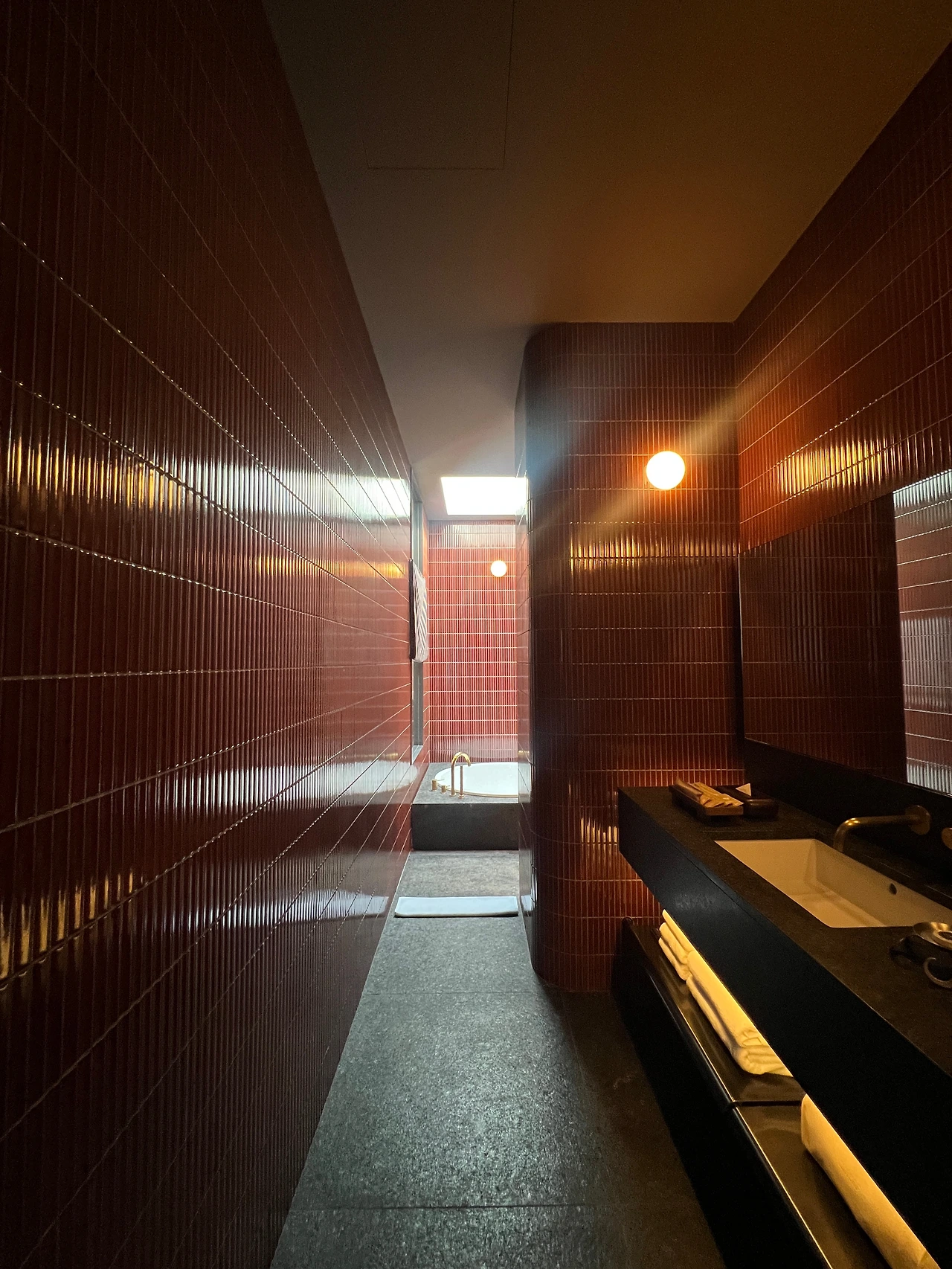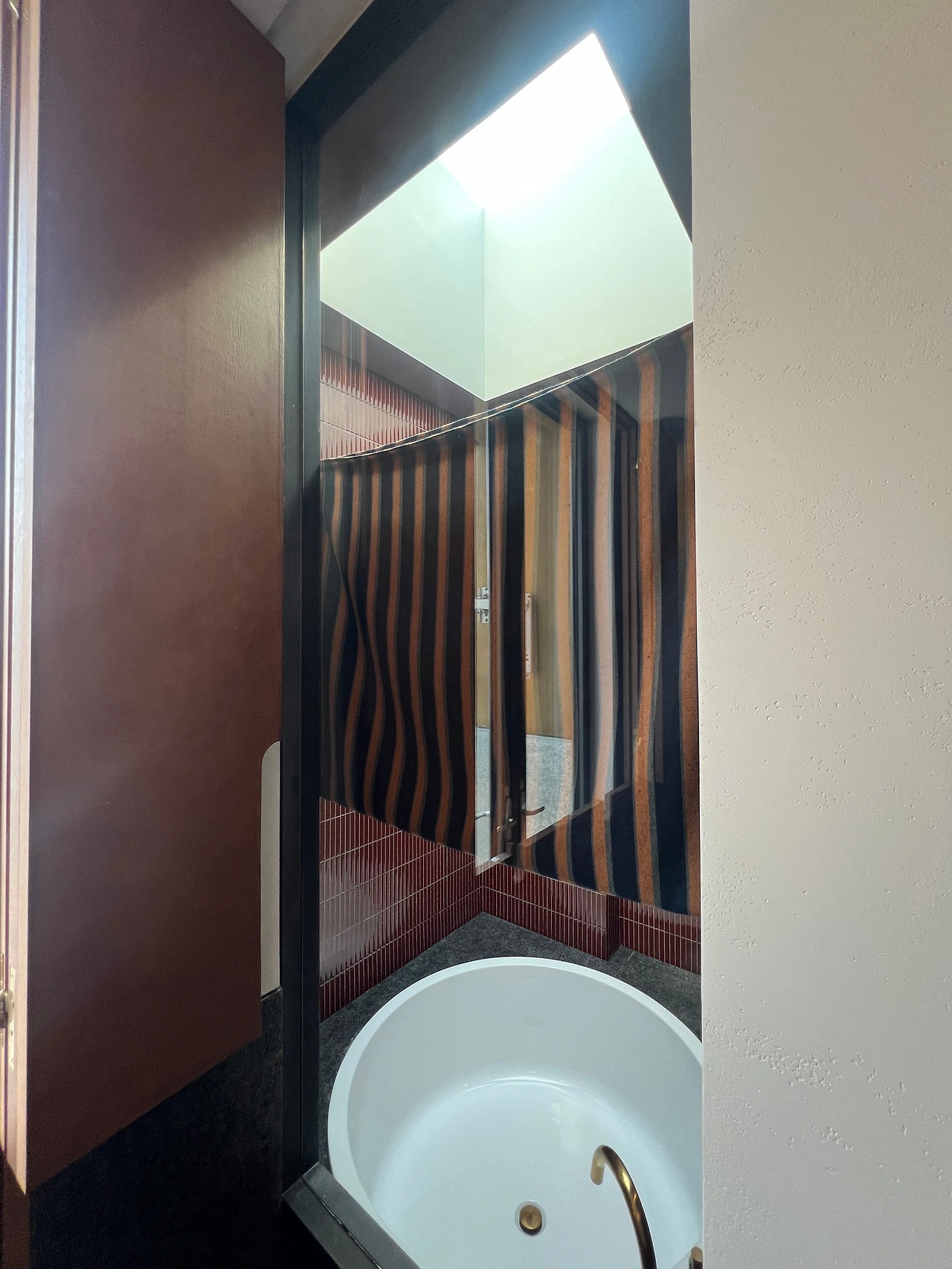 욕실의 천창 너머로 보이는 하늘은 생각보다 가까웠고, 실내에 있으면서도 바깥의 시간과 이어져 있었다. 다음날 아침엔 비가 내렸다. 덕분에 또 다른 정서를 느꼈다. 머문다는 것은 결국 시간을 경험하는 일이라는 사실을, 이곳은 조용히 알려주고 있었다.