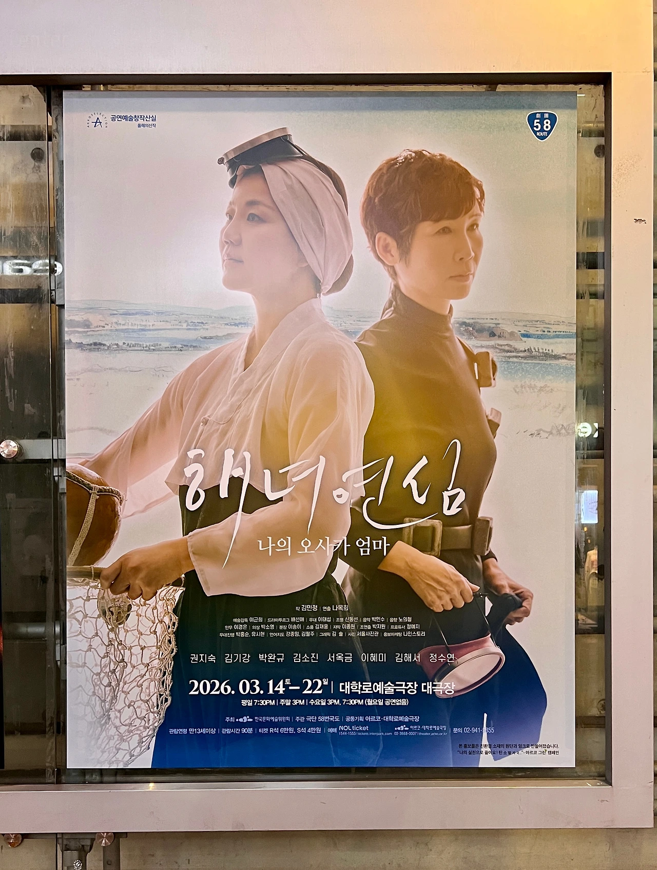 나옥희(배우 고수희의 극작가, 연출가로의 이름) 연출이 이끄는 ‘극단 58번 국도’의 대부분의 작품을 보았다. 이 극단은 주로 일본의 작고 따듯한 희곡을 발견해 무대에 올렸다. 김민정 작, 나옥희 연출의 <해녀 연심>은 이 극단이 직접 작품을 개발, 낭독 공연을 거쳐 창작산실에 응모해 올해의 신작에 선정되었다. 많은 창작자가 원하는 모범의 방식을 따른 순도 100프로의 창작극이다.