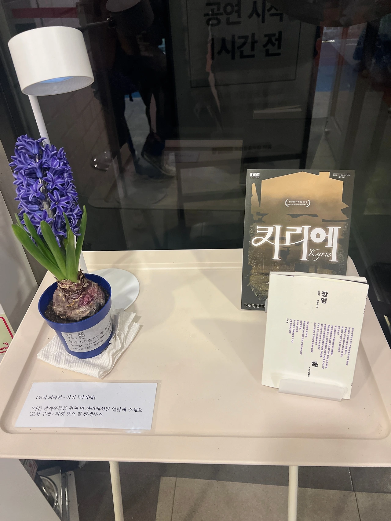 연출 역시 이러한 특징을 강화한다. 무대는 최소한의 장치와 단순한 동선으로 구성되어 있으며(연극 튤립의 검은 무대는 여기서부터 시작되었나? 튤립과 키리에의 무대 연출은 같은 무대처럼 보였다) 인물들은 특정한 상징적 위치에 머무는 경우가 많다. 이런 평면적 연출은 관객의 시선을 분산시키지 않고 텍스트와 정서에 집중하게 만드는 장점이 있지만 동시에 장면 간의 긴장이나 공간적 변주가 제한되면서, 극적 밀도의 확장이 어렵다. 결과적으로 <키리에>는 죽음을 사유의 대상으로 환기시키는 데에는 성공하지만, 그 감정과 형식을 입체적으로 확장하진 못했다(그래서 졸았다). 그래서 내겐 ‘자살 권유극’처럼 보여 너무 우울했다.