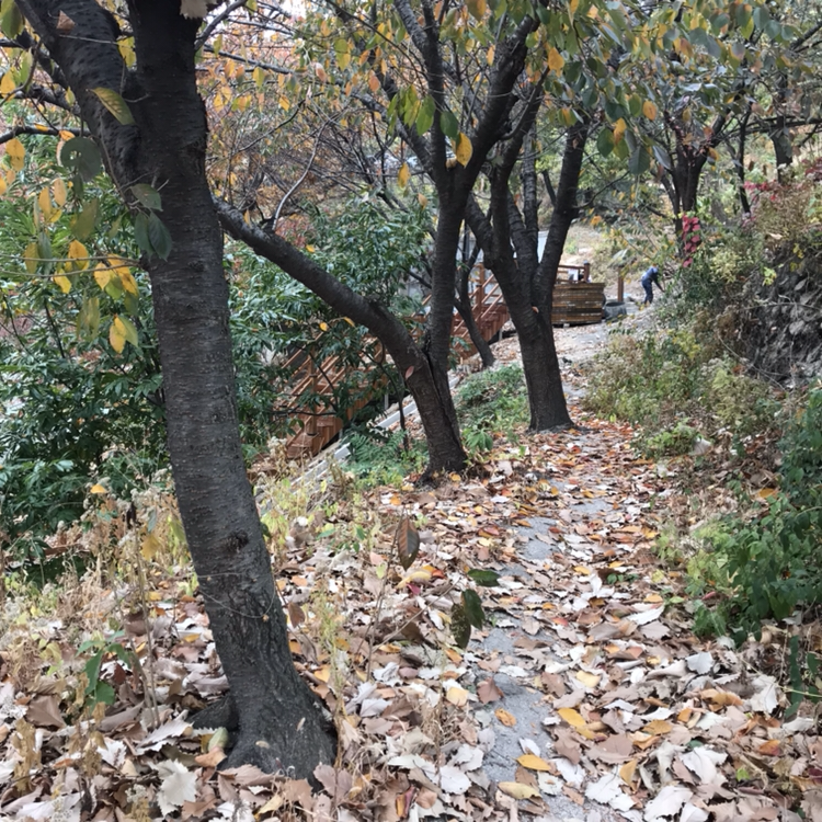 작년과 마찬가지로 갈참나무 낙엽은 쓸어도 쓸어도 끝이 없고..