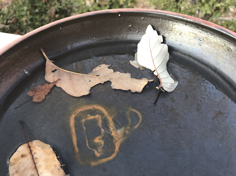 여름에 모기향을 두는 항아리 뚜껑에 고인 물에 첫 살얼음이 얼었다.