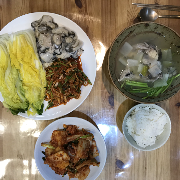 굴과 절인 배추의 그리고 맛김치의 환상 조합