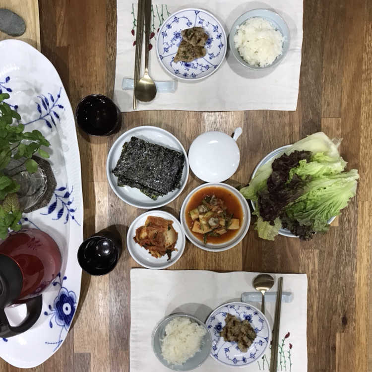 11/29 아침밥상_김치와 김 그리고 떡갈비