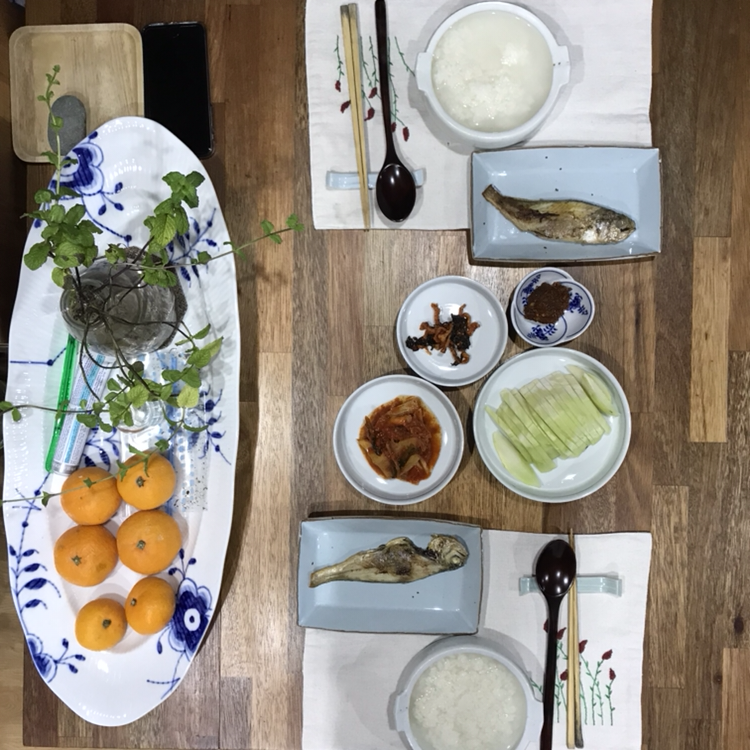 12/12 아침밥상_ 찬밥 물 부어 끓이고 조기를 굽다