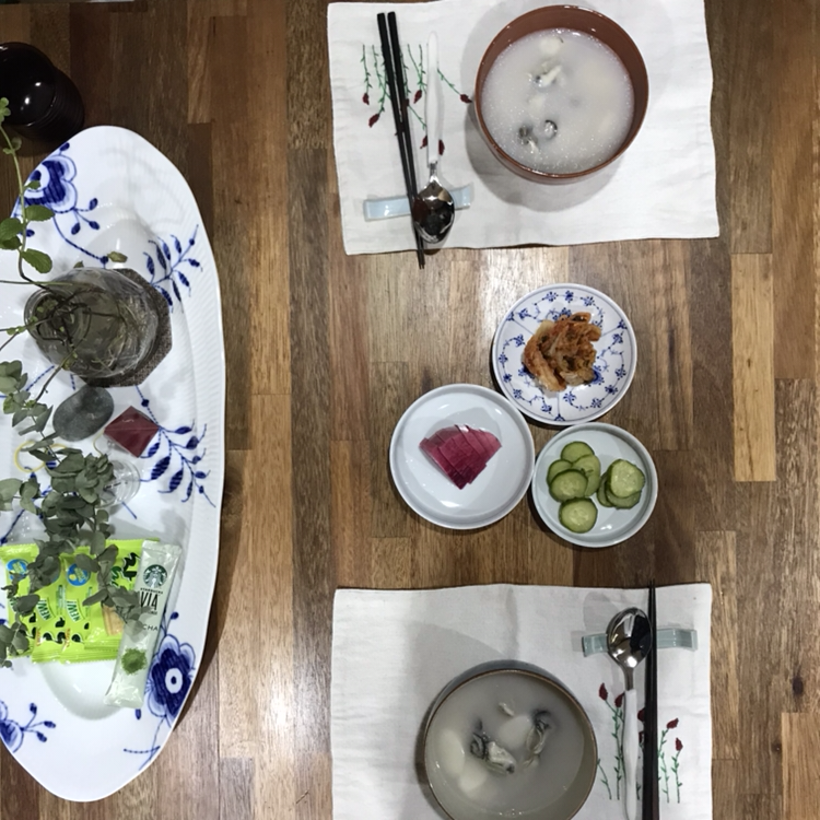 1/5 아침밥상_사골육수에 굴을 넣어 끓인 떡국