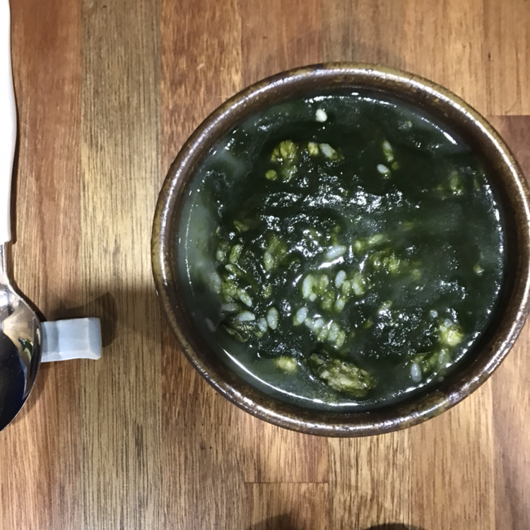 오늘은 밥에 매생이굴국을 붓고, 물도 조금 더 부어 싱겁게 국밥을 만들어 후루룩 먹었다.