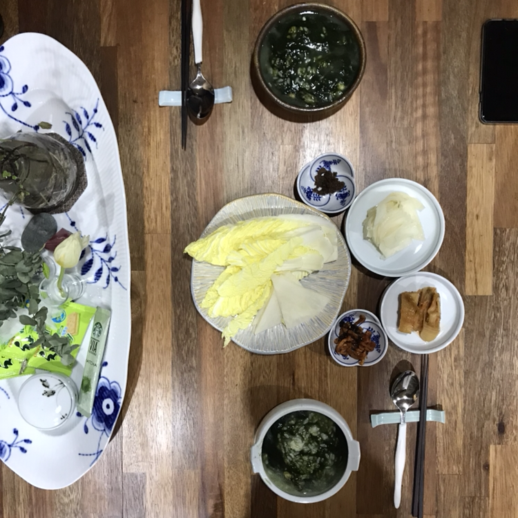 1/9 아침밥상_매생이굴국밥과 김치