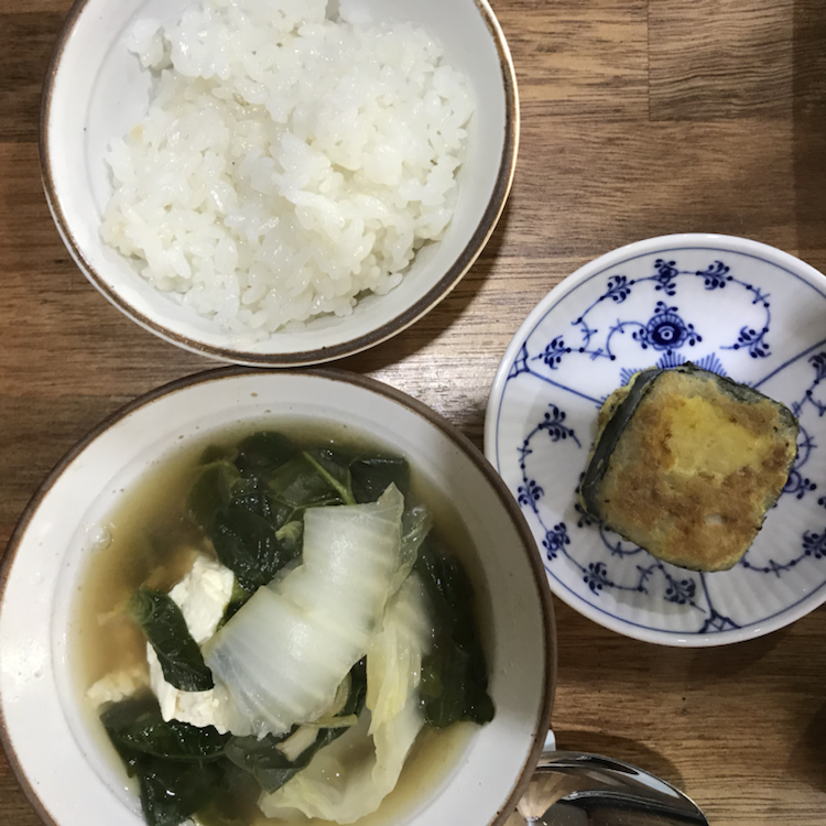 오늘도 늦잠을 잤지만 남편이 평소대로 출근해서 아침을 해서 먹었다. 흰쌀밥에 배추쌈, 김장김치 그리고 배춧잎과 시금치 넣은 된장국으로 차렸다.