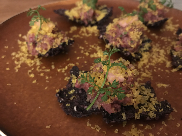 퍼먼트 비, 6인용 테이블이 있는 방에 자리를 잡고 앉아서 처음 서브를 받은 음식은 '비프 타르타르와 흑미칩'였다. 이 음식을 먹는 순간, 내 기억에 자리잡고 있던 프라이빗133의 음식이 떠올랐다. 바삭한 흑미칩 위에 올려진 간이 아주 잘 된 부드러운 쇠고기 타르타르 그리고 된장에 절인 노른자 토핑까지 ... 간과 맛, 향과 질감까지 어느하나 빠지지 않은 이 음식은 오래 전 내 기억의 그 황홀했던 맛을 떠오르게 했다.