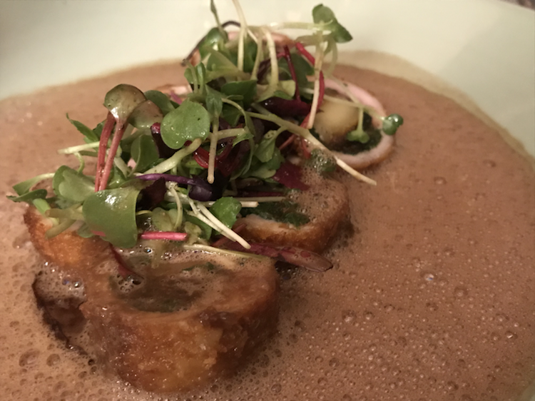하지만 우린 식사를 했다. 이어진 음식은 '돼지 등심의 코돈 블루' 발사믹 크림에 적셔먹는 돼지 등심 혹은 돈까스라 할만한 이 음식은 상큼하면서 동시에 익숙한 맛을 준다.