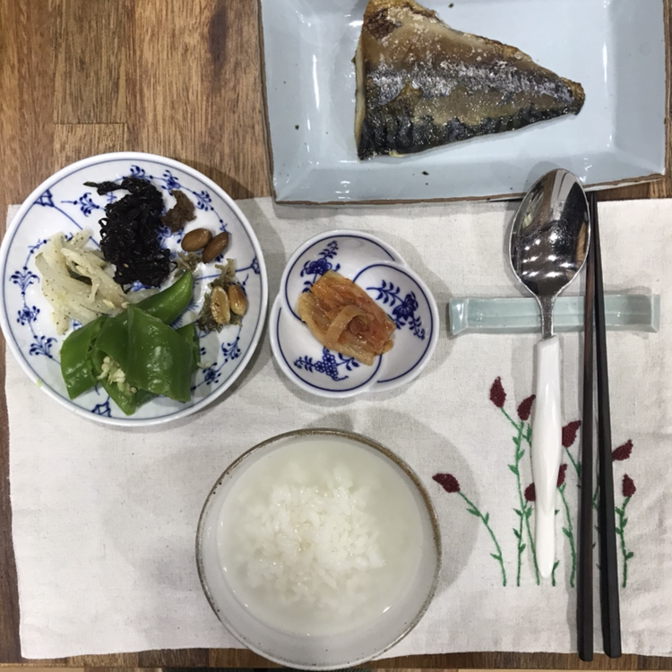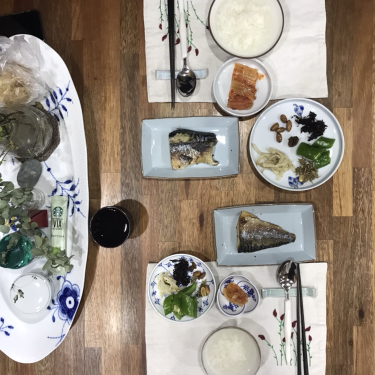 체중을 줄이기 위해 최근 늘어난 양을 좀 줄이고(특히 탄수화물), 반찬도 조금 신경써서 먹음으로 염분 섭취도 낮추려 합니다. 오늘은 간고등어를 올렸더니 다른 찬을 전혀 먹지 않아도 되더라구요.