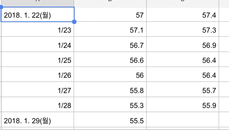 체중은 올랐다 내렸다하면서 정착을 합니다. 전 55키로 대로 진입한 거 같습니다.