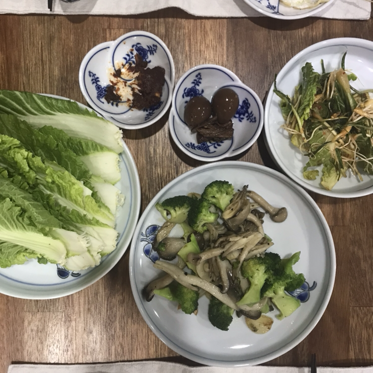 샐러드는 고춧가루 마늘 청양고추를 선물 받은 일본산 소스에 넣어 양념을 만들고 참기름과 깨소금을 뿌렸다. 맛있다.