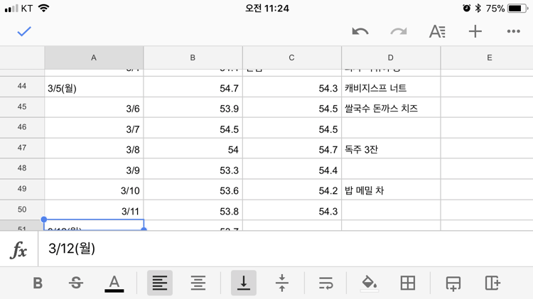 지난 주 나의 목표는 53키로 대 안착이었다. 그런 점에서 아침 체중은 나쁘지 않은 편이었다.
