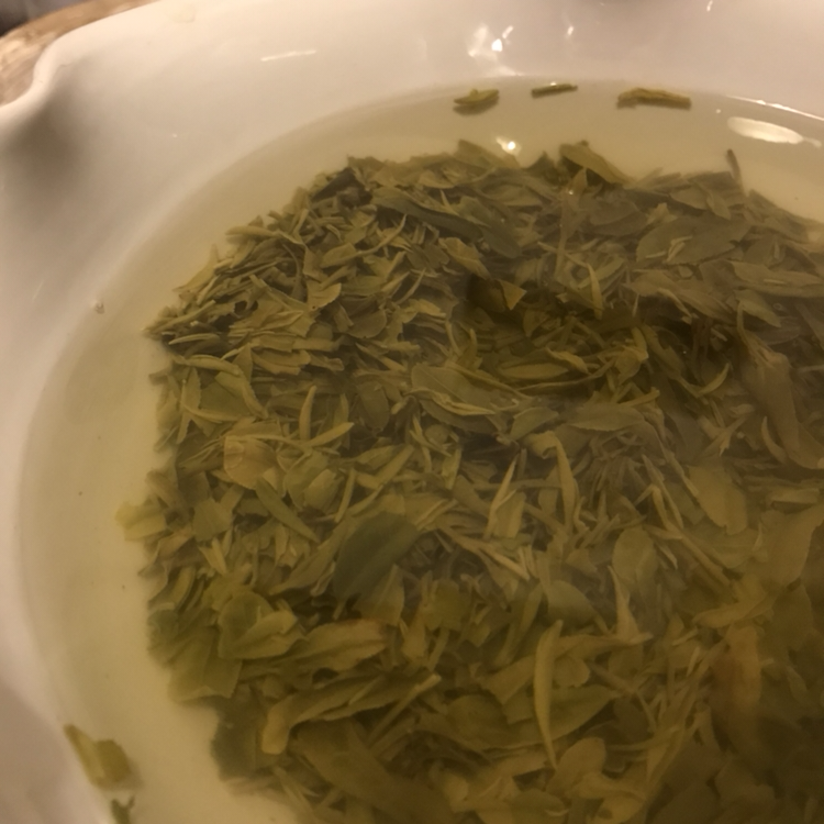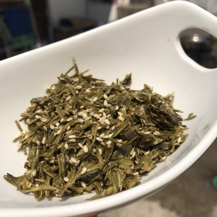 이 녹차잎은 잘 달군 팬에 들기름을 넣고 볶는다. 간은 마지막에 소금으로 살짝한 후 깨소금 조금 뿌려 마무리한다.