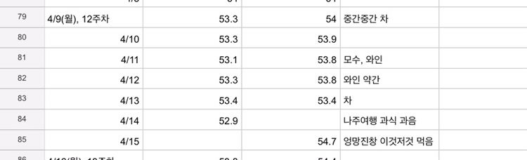 아무튼 시작했을 때보다 3.6키로 감소했다.