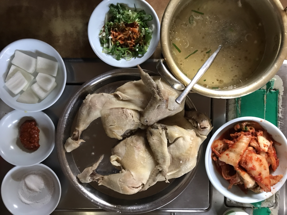 백숙백반도 좋다. 아주 깔끔한 닭국물과 부드럽게 삶아진 닭고기가 그만였다.
