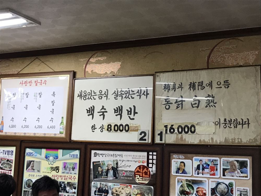여름이니까 닭요리 충무로 사랑방칼국수 백국백반과 칼국수.