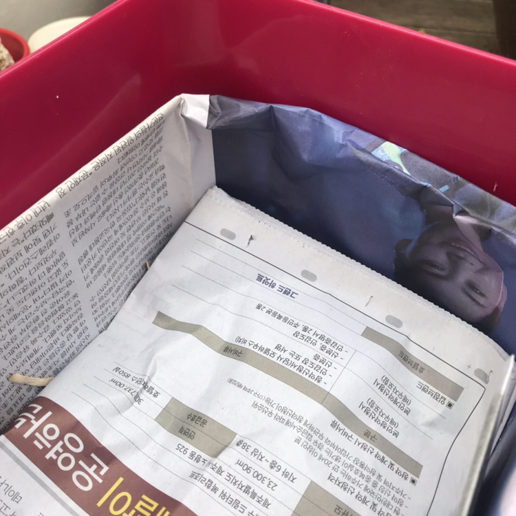 김치 냉장고용 통의 바닥과 면에 신문지를 깔고 두른다.