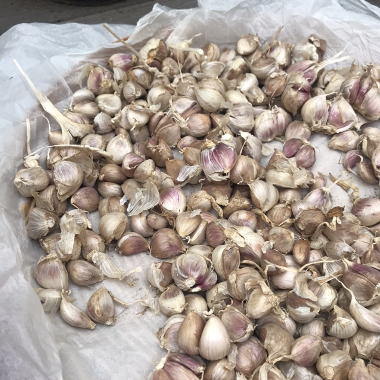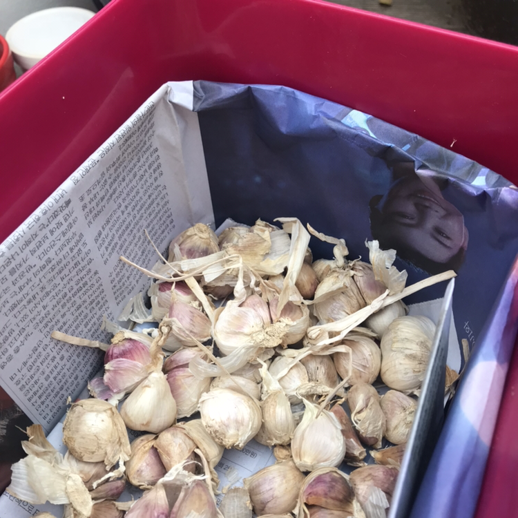 한접을 주문해 마늘이 도착하면 이삼 일 볕에 잘 말리고 사진처럼 알알이 분리해 보관한다 .