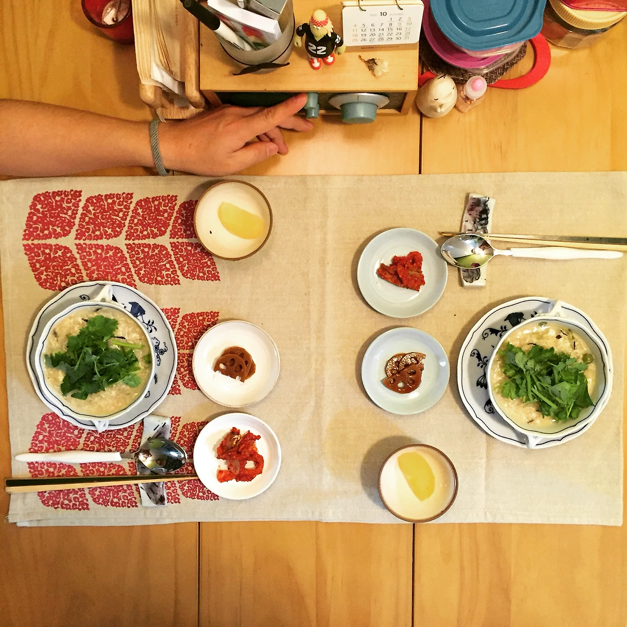 제가 밥을 차리면 남편은 라디오를 켭니다. 실로 오랜만에 백미로 죽을 끓였어요.