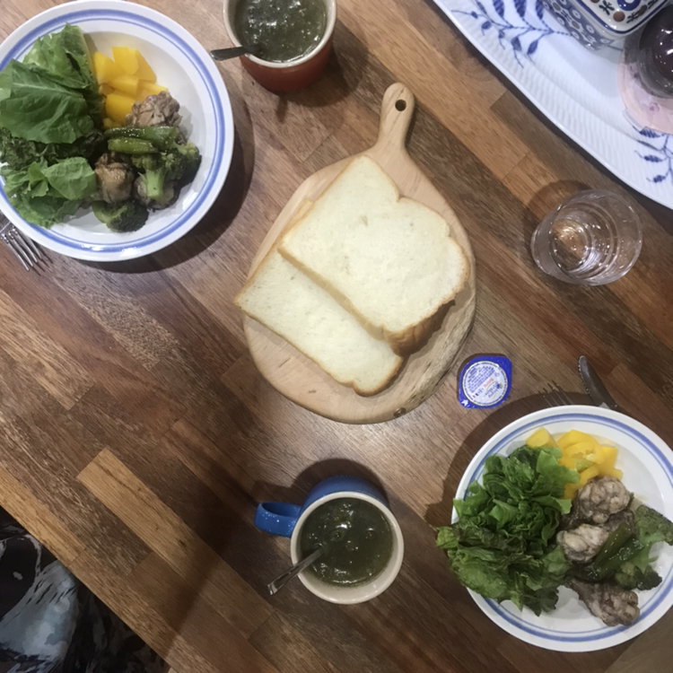 아침부터 닭봉을 먹는 내가 좀 웃겼지만 탄수화물을 줄이며 생긴 변화다. 오늘 식탁에 오른 빵도 먹지 않았다.