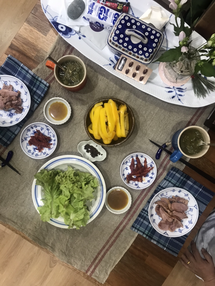 요즘 주로 먹는 고기는 반조리된 훈제 오리고기다