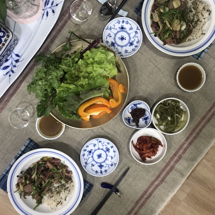 채소를 넣고 고기를 볶아 밥에 얹어 먹기도 하고 집을 넣어 볶아 먹기도 한다