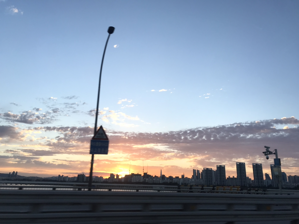 수요일 새벽 조찬 모임에 갈 때 늘 택시를 탄다. 택시는 주로 반포대교를 건넌다. 택시가 이 다리를 건널 땐 습관적으로 오른쪽으로 고개를 돌려 하늘을 보았는데 오늘은 왼쪽을 보았다. 그리고 여태껏 보았던 것과 다른 하늘을 만났다. 일출 무렵의 뜨거운 하늘을. 나란 해는 지금 어디 쯤에 있는지 궁금해졌다.